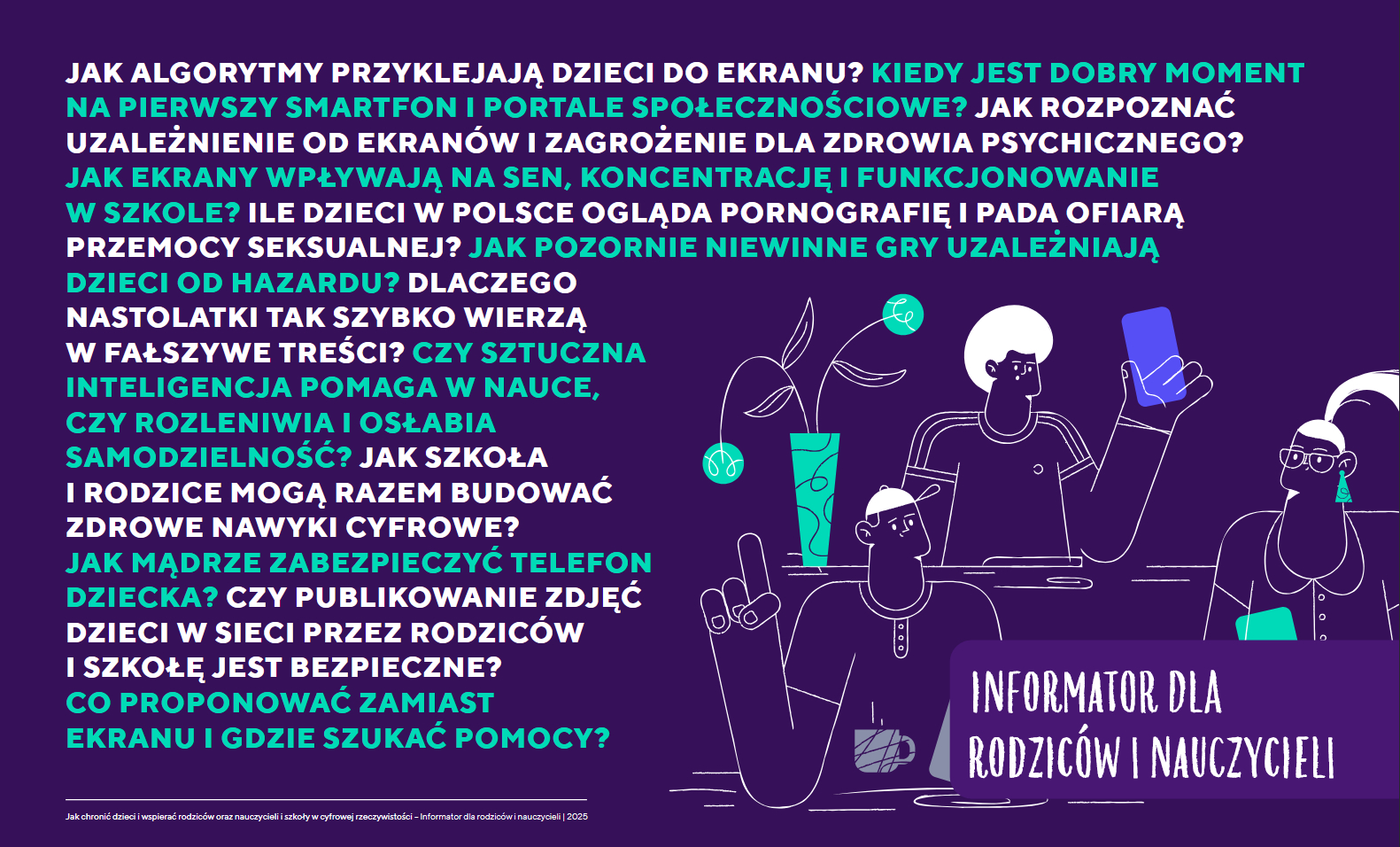 Ministerstwo Edukacji Narodowej przekazuje publikację „Ekrany, zdrowie, bezpieczeństwo i dostęp do informacji. Informator dla rodziców i nauczycieli”, przygotowaną przez Press Club Polska we współpracy z zespołem ekspertów z zakresu edukacji, zdrowia psychicznego dzieci i młodzieży, bezpieczeństwa cyfrowego oraz mediów. Dokument dostępny pod linkiem